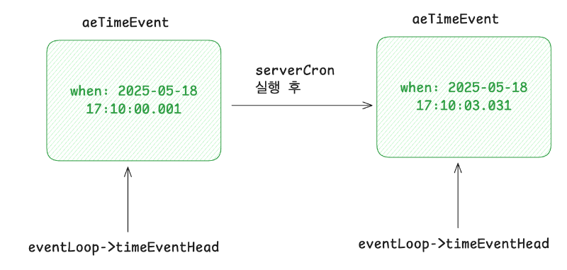 Time Event에 설정한 시간보다 현재시간이 과거면 timeProc(serverCron)를 실행한다.